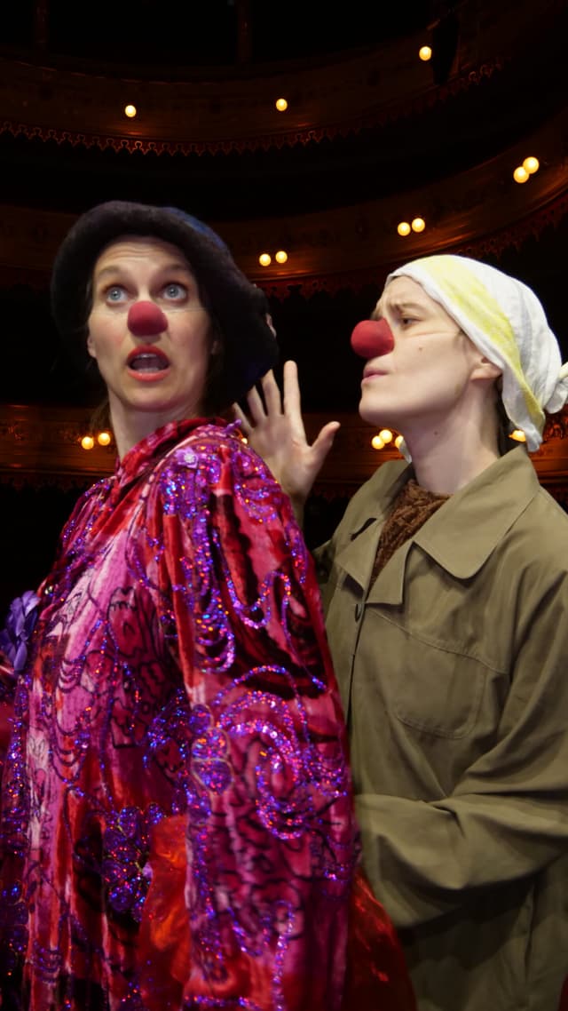Ikväll bjuder Lina Jungergård och Nora Fuchs på en cirkusakt inspirerad av den klassiska clownduon – med en twist. Madam (Lina) ska genomföra ett storslaget luftnummer i tyg, medan hennes trogna följeslagare och beundrare Nono (Nora) gör sitt bästa för att hjälpa till. Men som så ofta i clownens värld går inte allt riktigt som planerat…