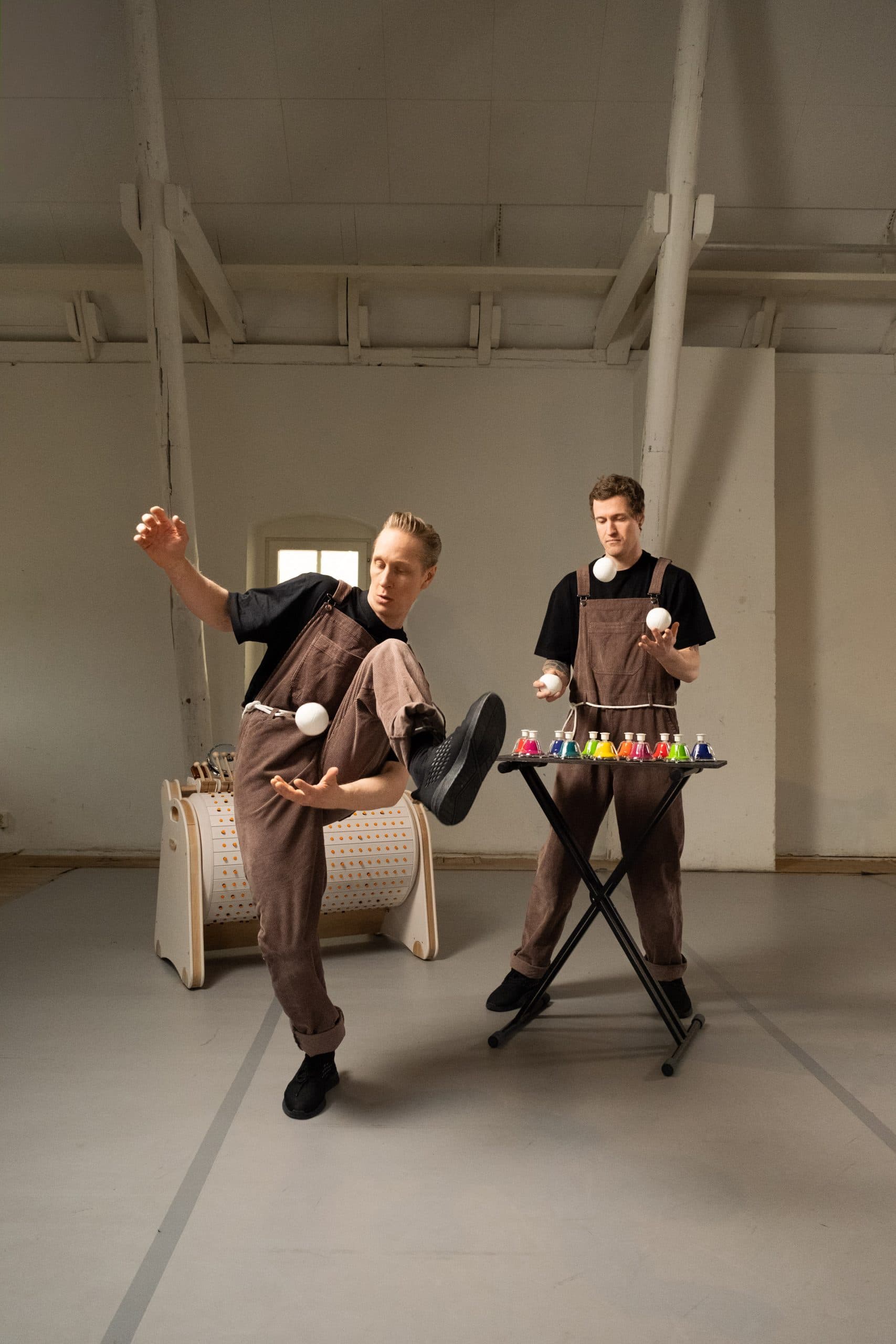 Toner som kastas. Rytmer som fångas. Bollar som instrument? En flygande melodi. Kan man jonglera musik? Ljudspår är ett musikaliskt äventyr för alla åldrar där jongleringen skapar musiken. Två jonglörer visar vad man kan göra och skapa med bara sina två händer och mycket fantasi. Med sig har de en musikalisk maskin som också skapar musik och som man visuellt ser exakt när ljudet ska komma och vad det ska bli för ljud. Peter Åberg, jonglör och minnesmagiker, skapar tillsammans med Viktor Gyllenberg, jonglör och dansare, denna unika föreställning. Under föreställningens 30 min får vi se jonglering, dans, samarbete, balans, rörelse, magi och mycket musik. Trailer till föreställningen hittar du här: Ljudspår trailer